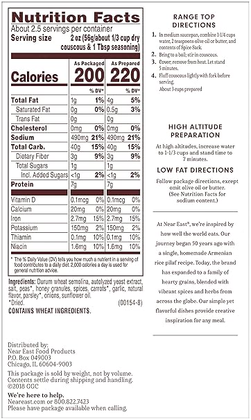 Near East Couscous Nutritional Info - Buy Near East Couscous Wild Mushroom And Herb 5 4 Oz Online In Indonesia B000wczlle / 16% fat, 70% carbs, 14% protein.